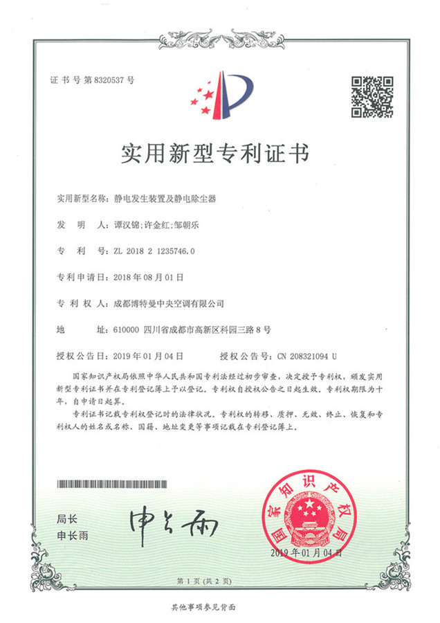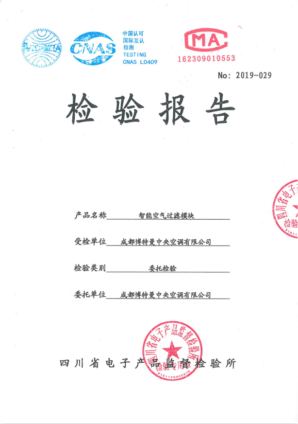 通过权威机构检测得出,博腾迈智能过滤模块净化率为99.4%,杀菌率为85%。目前已经获得多项国家新型专利证书。